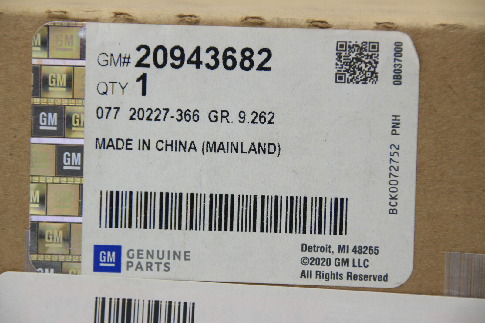 GM Part Number: 20943682