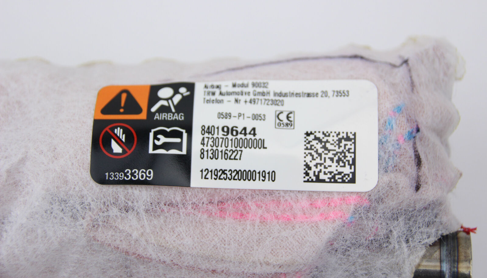 Brand new genuine GM front left seat outboard seat back airbag assembly.