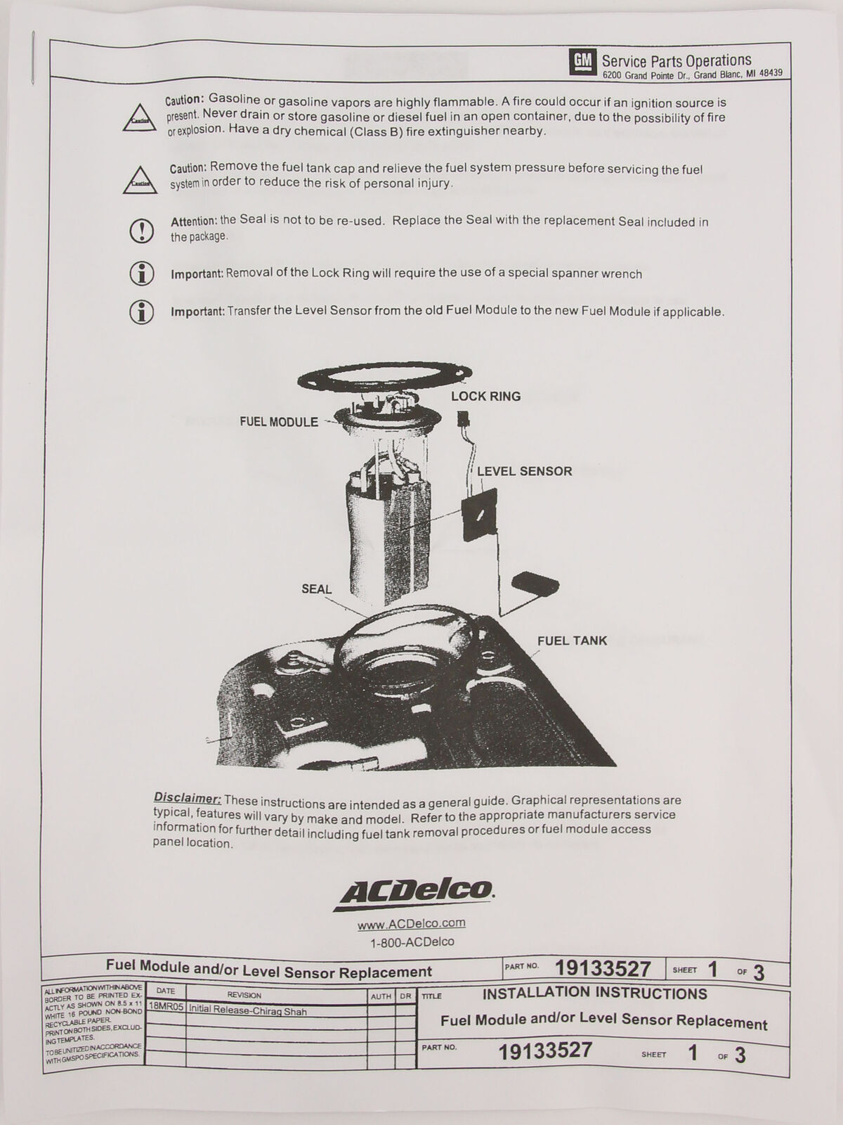 Genuine GM Chevrolet Silverado / GMC Sierra Fuel Level Sensor Kit – 6.6L Duramax (2017–2019)