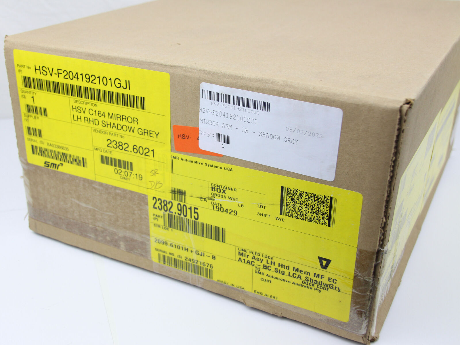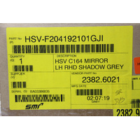 Brand new in box genuine HSV left-hand side door mirror, painted in factory HSV colour Shadow Grey Metallic. Supplied painted and ready to install.