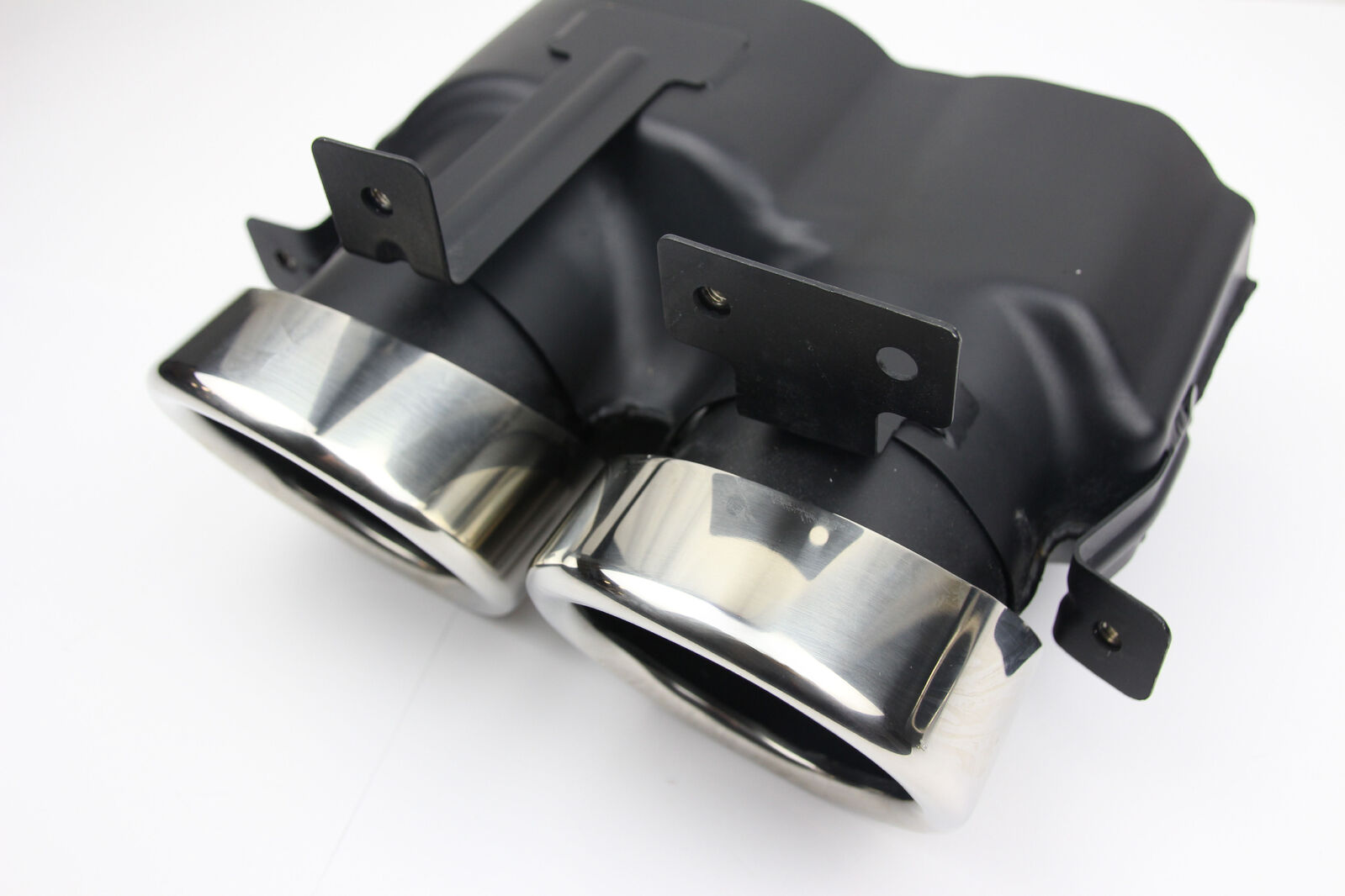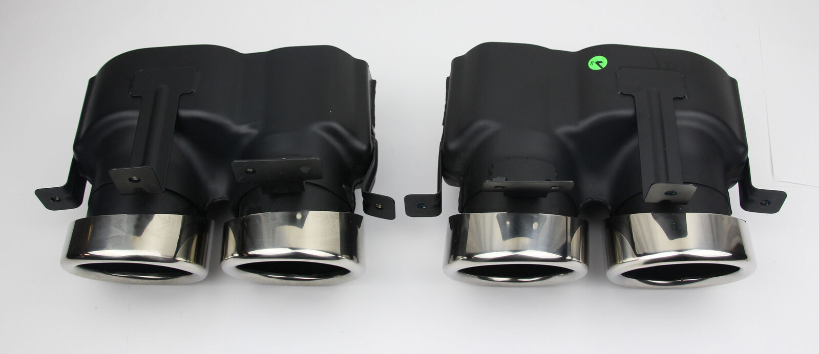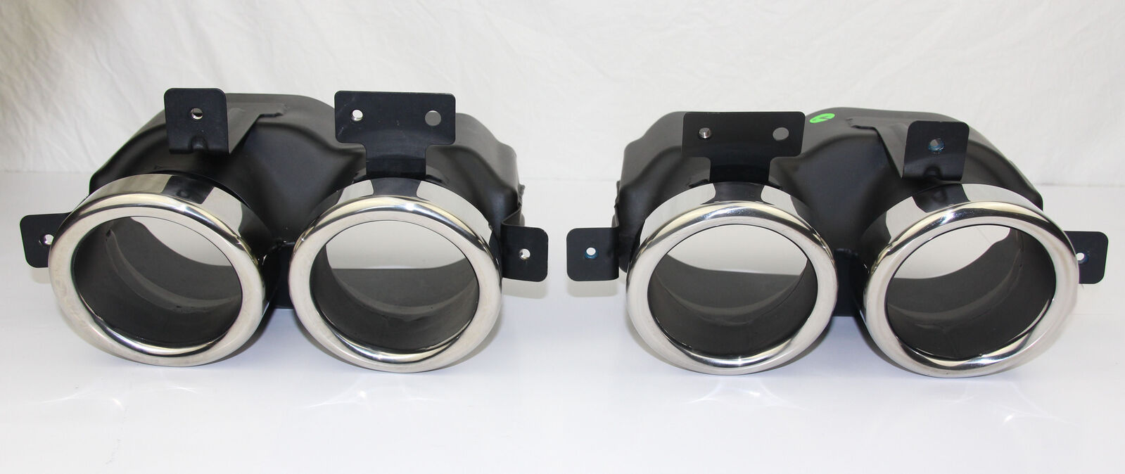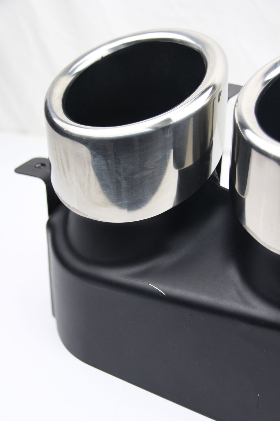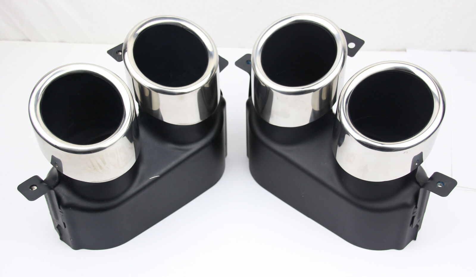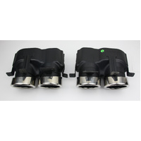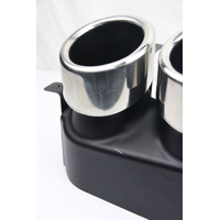 Removed from a new vehicle that received a custom exhaust upgrade. The vehicle had delivery kilometres only, so these exhaust tips are in like-new condition.