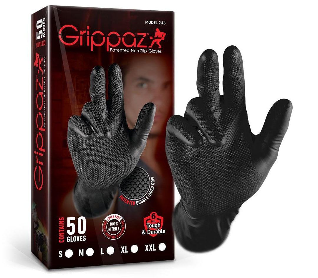 Grippaz gloves are a premium semi-disposable nitrile glove designed for workshop and trade use. In many applications, they can be worn for an entire day or shift without needing replacement.