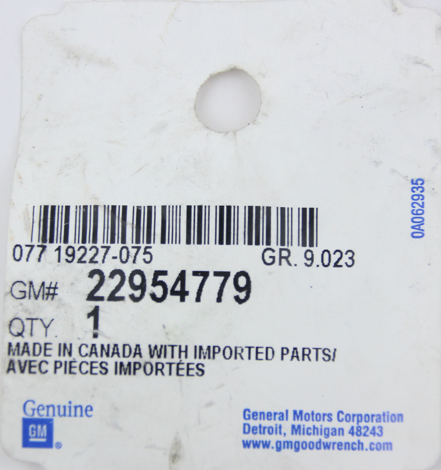 GM Part Number: 22954779