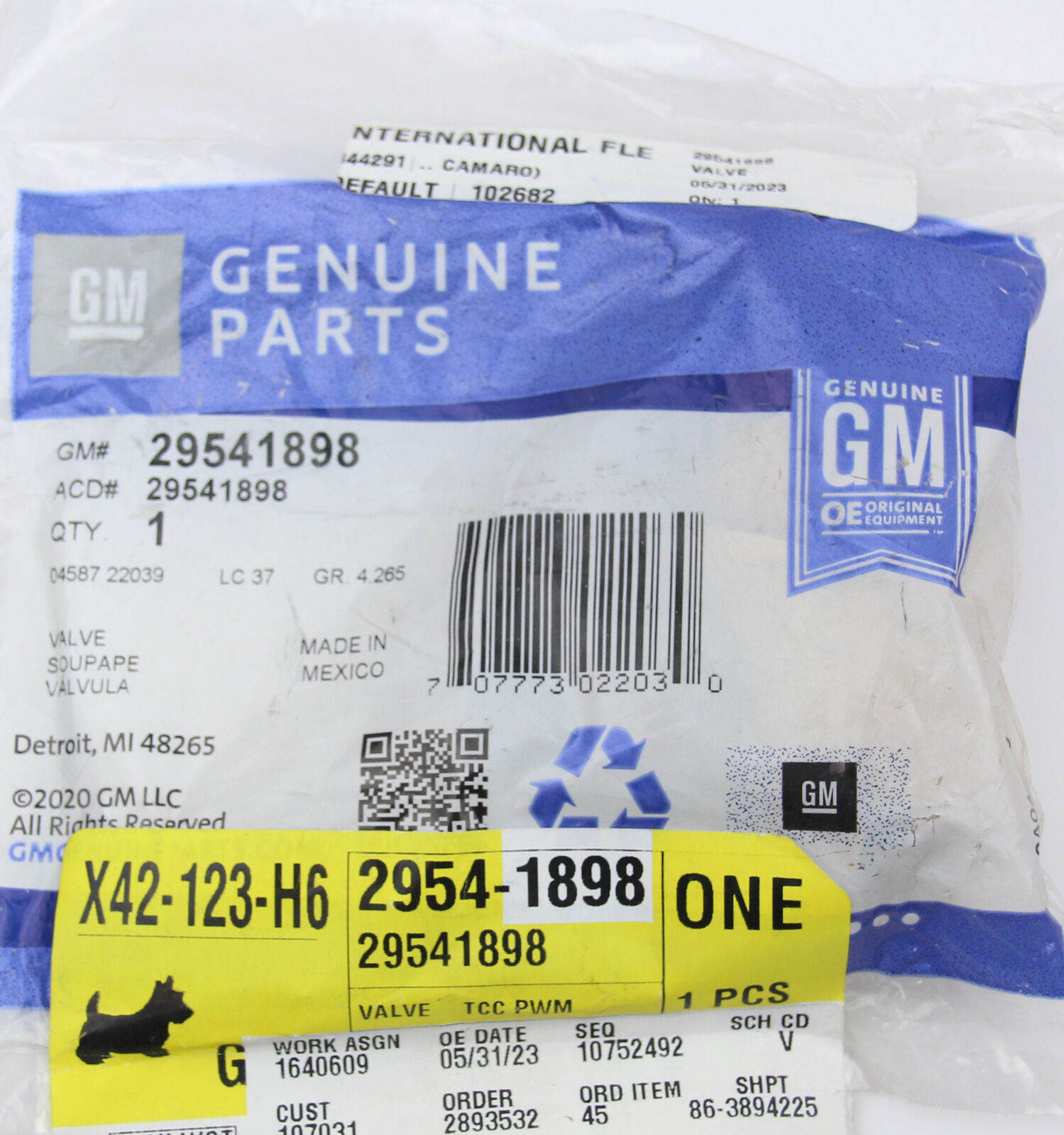 NEW GM 29541898 Transmission Torque Converter Clutch Pulse Width Modulation Valve