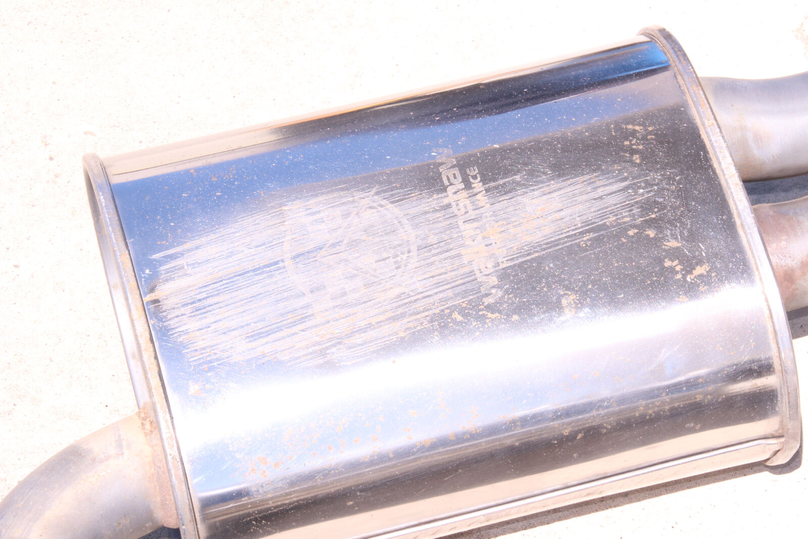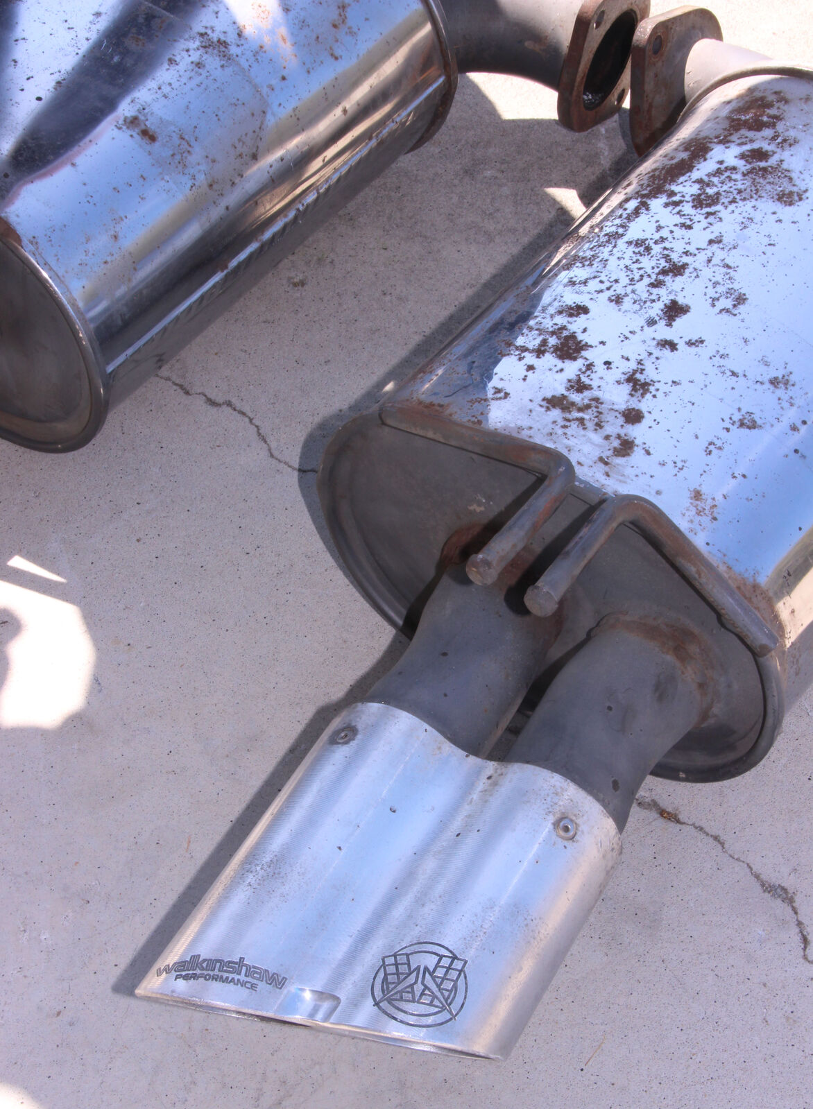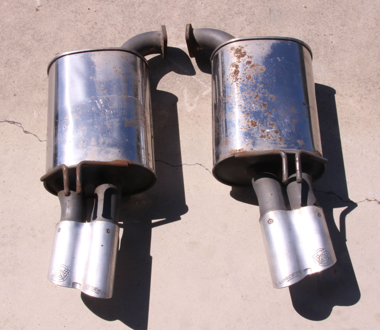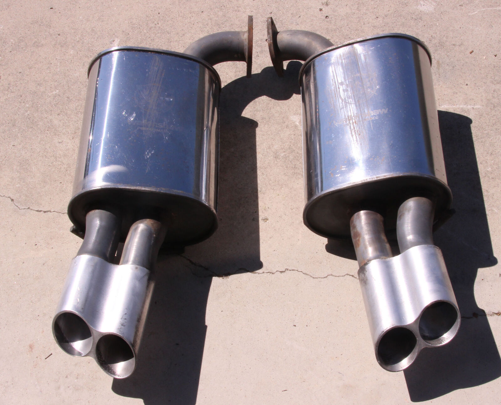 These mufflers are in USED condition and have various scratches, etc. please see photos as they are of the actual mufflers you will receive.